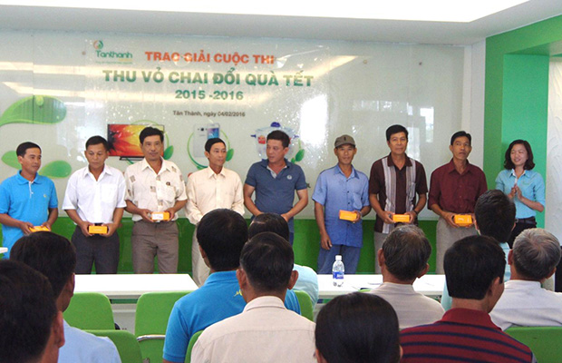 The program took place 2 times on Mid-Autumn 2015 and Lunar New Year 2016 with chosen numbers of empty bottles in 2015 & 2016 was 993.3000 units, nearly 1000.000 units. Tan Thanh was so proud of this figure. The company was the pioneer in collecting and changing empty bottles for gifts in order to keep clean environment and offered farmers a better Tet holiday.