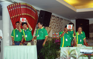 b. Vòng chung kết: TTF xử lý tình huống. Có 8 câu hỏi tự luận tương ứng với 8 đoạn clip tình huống chiếu trên màn hình (sản phẩm công ty, đoán người nổi tiếng, bài hát, đoạn cải lương, tình tiết phim…). Sau khi câu hỏi được đưa ra đội nào biết đáp án nhanh chóng đưa cờ dành quyền trả lời.